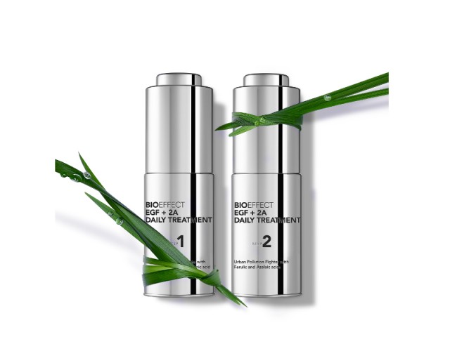 Iz osnove, inovativnega Bioeffect EGF seruma, so razvili izredno kombinacijo dveh novih serumov, ki izkoriščata prednosti proteina EGF, ki ga pridobivajo iz ječmena in dveh močnih antioksidantov, ferulične in azelaične kisline, ki jih prav tako najdemo v ječmenu, ki ščitita kožo pred škodljivimi vplivi okolja. Dvofazna nega zagotavlja, da aktivne sestavine delujejo v sinergiji za maksimalen efekt.